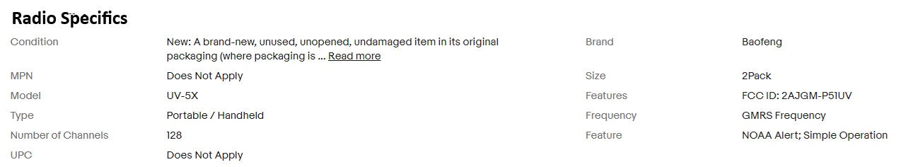 Baofeng UV-5X UV-5G GMRS Radio Repeater Capable Long Range Radio 2pcs