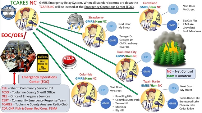 When Tuolumne County has declared a State of Emergency the Emergency Operations Center (EOC) will be activated and staffed with a TCARES Net Control Operator along with representatives from many agencies that will coordinate emergency responders.